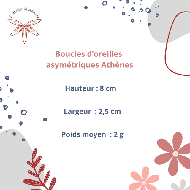Pour renforcer leur originalité, chaque boucle se distingue : l’une par une fine tige, l’autre par un petit éventail argenté, ajoutant une note graphique chic. Vernies pour assurer leur imperméabilité, ces boucles sont légères et agréables à porter, pour une journée au bureau ou une soirée élégante.
