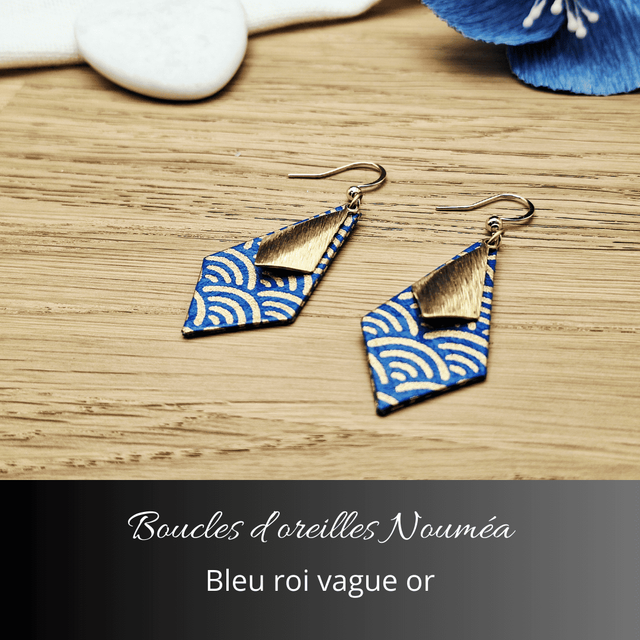 Boucles d'oreilles Nouméa - Bleu roi vague or