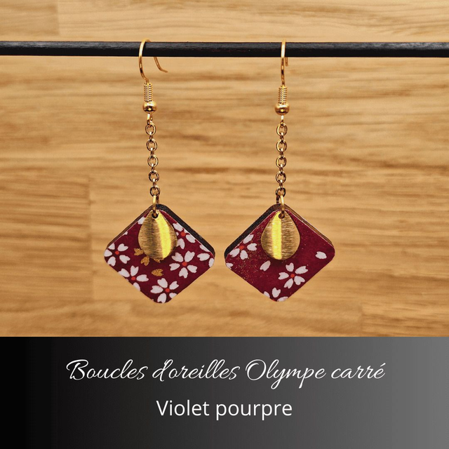 Boucles d'oreilles Olympe carré - Violet pourpre
