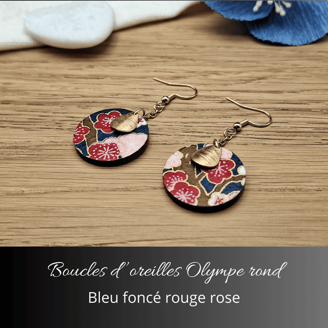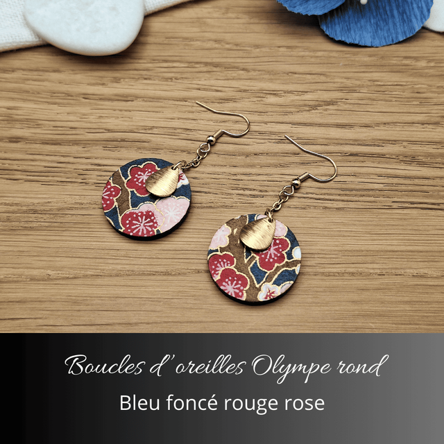 Boucles d'oreilles Olympe rond - Bleu foncé rouge rose