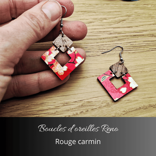 Boucles d’oreilles artisanales en papier, au style graphique et affirmé. Légères, vernies et agréables à porter.